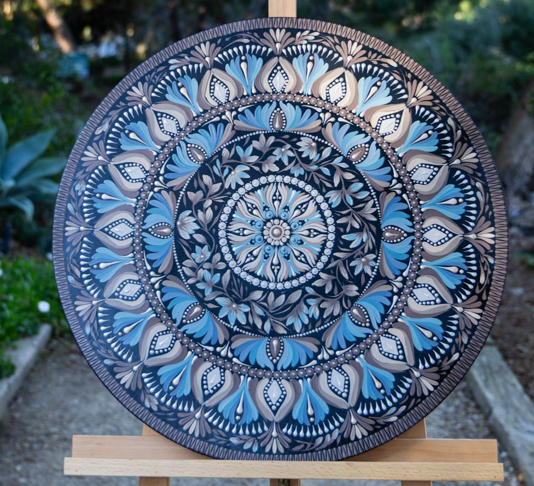 About three years ago, during a spiritual journey at the temple I’m part of, I discovered mandalas — and everything changed. I found in mandala painting a form of meditation, healing, and devotion. Since then, I haven’t stopped.