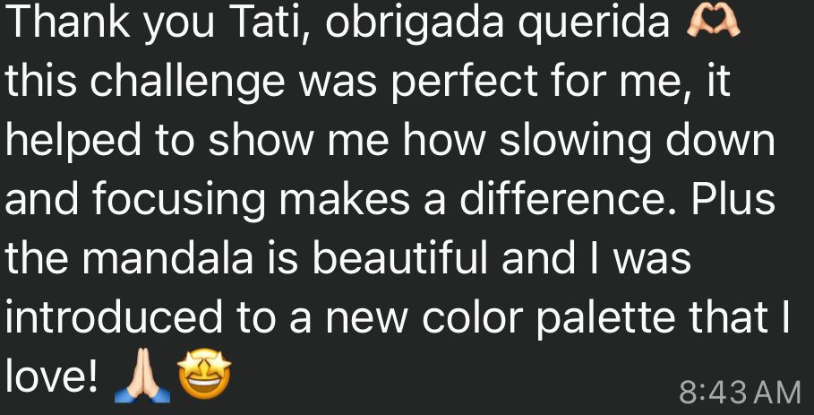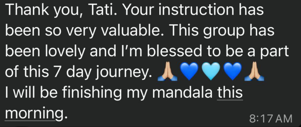 Special painting series where you paint a mandala for under 30 min for 7 days while sharing the experience with others on a dedicated Whatsapp community.