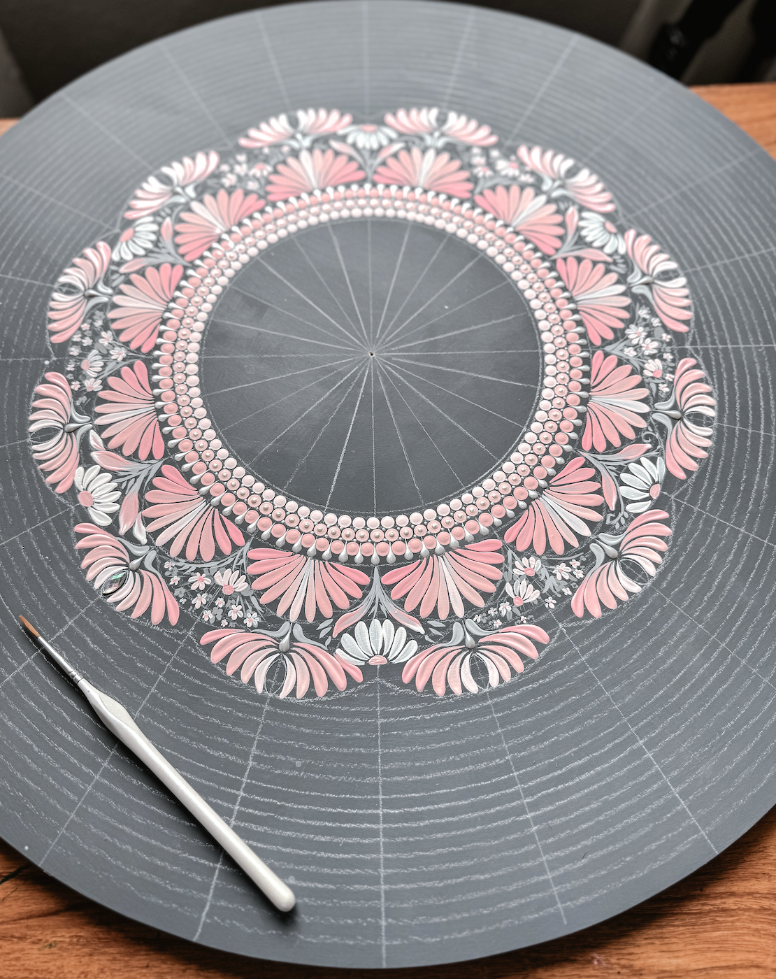 This module is all about building confidence through practice. Here, we slow things down and focus on the foundations of mandala painting—dotting techniques, paint consistency, brush control, and intentional brushstrokes. You’ll practice creating floral elements, petals, and basic designs that will appear again and again throughout your mandalas.